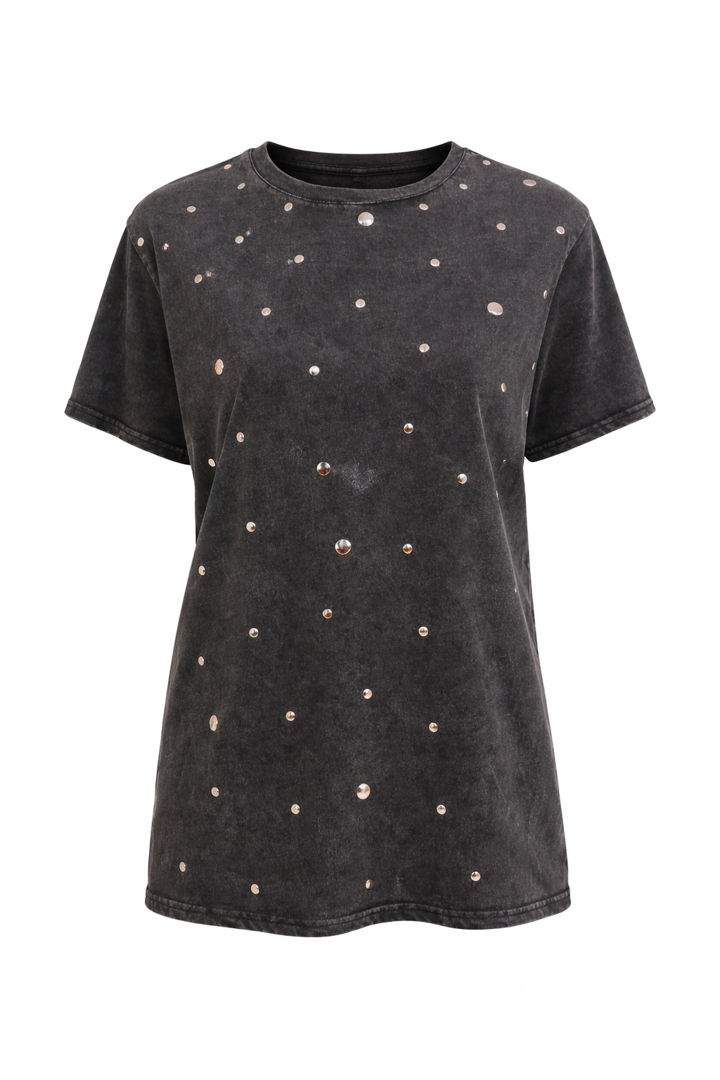Το μαλακό, άνετο ύφασμα αγκαλιάζει το σώμα ενώ οι μεταλλικές κουκκίδες δημιουργούν ένα minimal αλλά statement αποτέλεσμα. Ιδανικό για all-day εμφανίσεις — από casual street styling μέχρι πιο βραδινό outfit με blazer και heels.