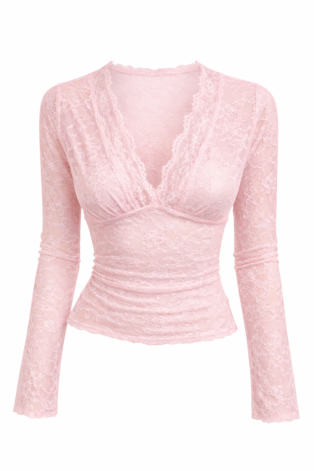 Ένα κομμάτι που ισορροπεί ανάμεσα στο sensual και το refined. Το Sheer Lace Top αναδεικνύει τη θηλυκότητα μέσα από τη διαφάνεια και τη λεπτομέρεια, δημιουργώντας ένα αποτέλεσμα που είναι ταυτόχρονα bold και κομψό. Η ημιδιάφανη δαντέλα αγκαλιάζει το σώμα σαν “second skin”, αποκαλύπτοντας διακριτικά τη σιλουέτα και δημιουργώντας ένα φίνο παιχνίδι διαφάνειας. Το βαθύ ντεκολτέ σε V προσθέτει ένταση στο look, ενώ η εφαρμογή τονίζει φυσικά τη μέση, χαρίζοντας μία καμπυλωτή, θηλυκή γραμμή. Τα μακριά μανίκια και το ελαφρώς καμπυλωτό τελείωμα ισορροπούν το σύνολο, δίνοντας μία πιο refined αισθητική, ενώ το ύφασμα προσαρμόζεται στο σώμα με άνεση και ελαστικότητα.